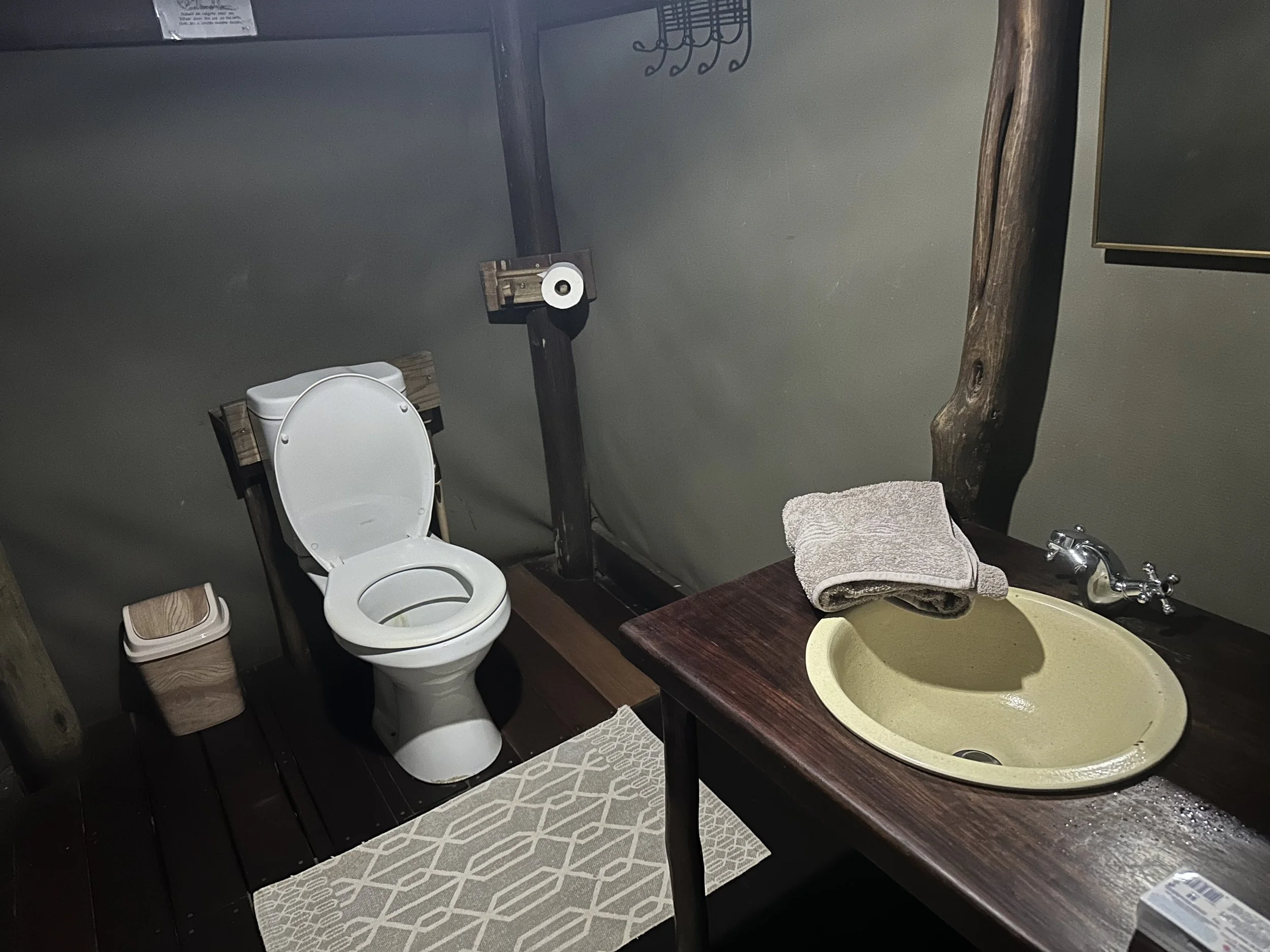 Two guests each share an airy and cool sleeping pod. Along a short walkway, shared showers and toilets are under the Leadwood trees.